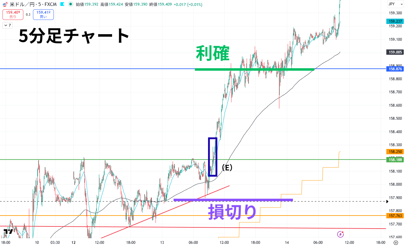5分足に落としてエントリータイミングを計る