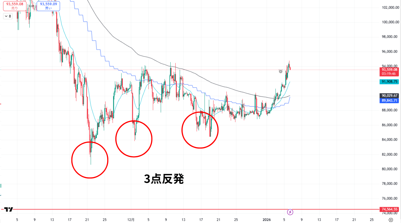 ビットコインはファンダメンタルズの影響が強く、これまでテクニカル分析が効きにくい印象を持っていましたが、最近は徐々にテクニカルも機能し始めているように感じています。