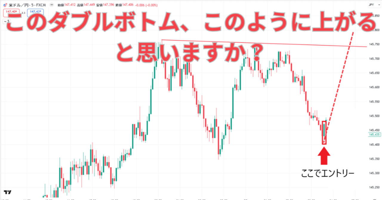 三尊(ヘッドアンドショルダー)と比べるとシンプルで視認性が高く、初心者にも扱いやすいのが利点です。注意点は、レンジ相場の中央で多発する偽のネックラインです。