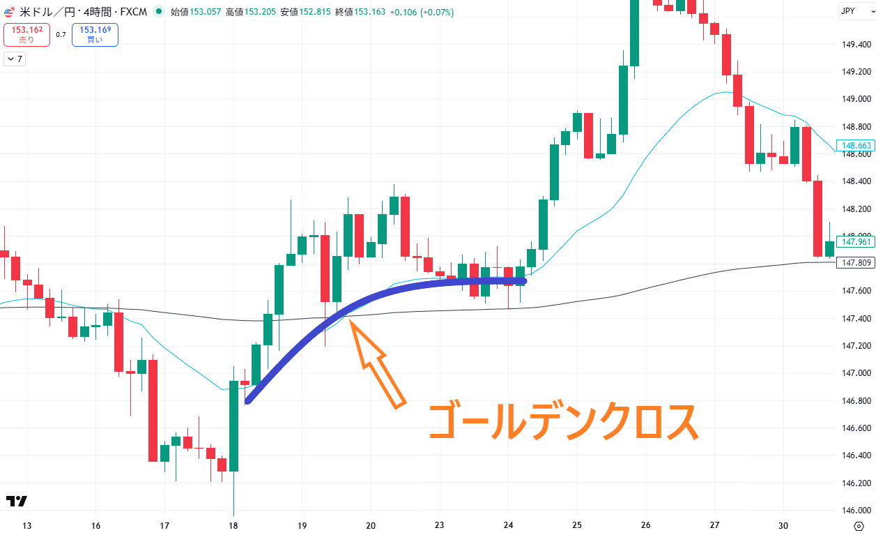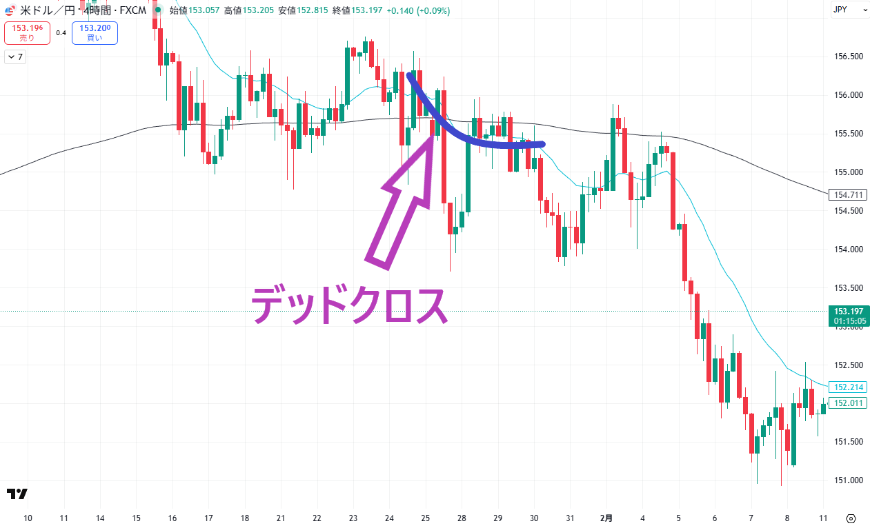 移動平均線のクロス・傾きで方向を確認