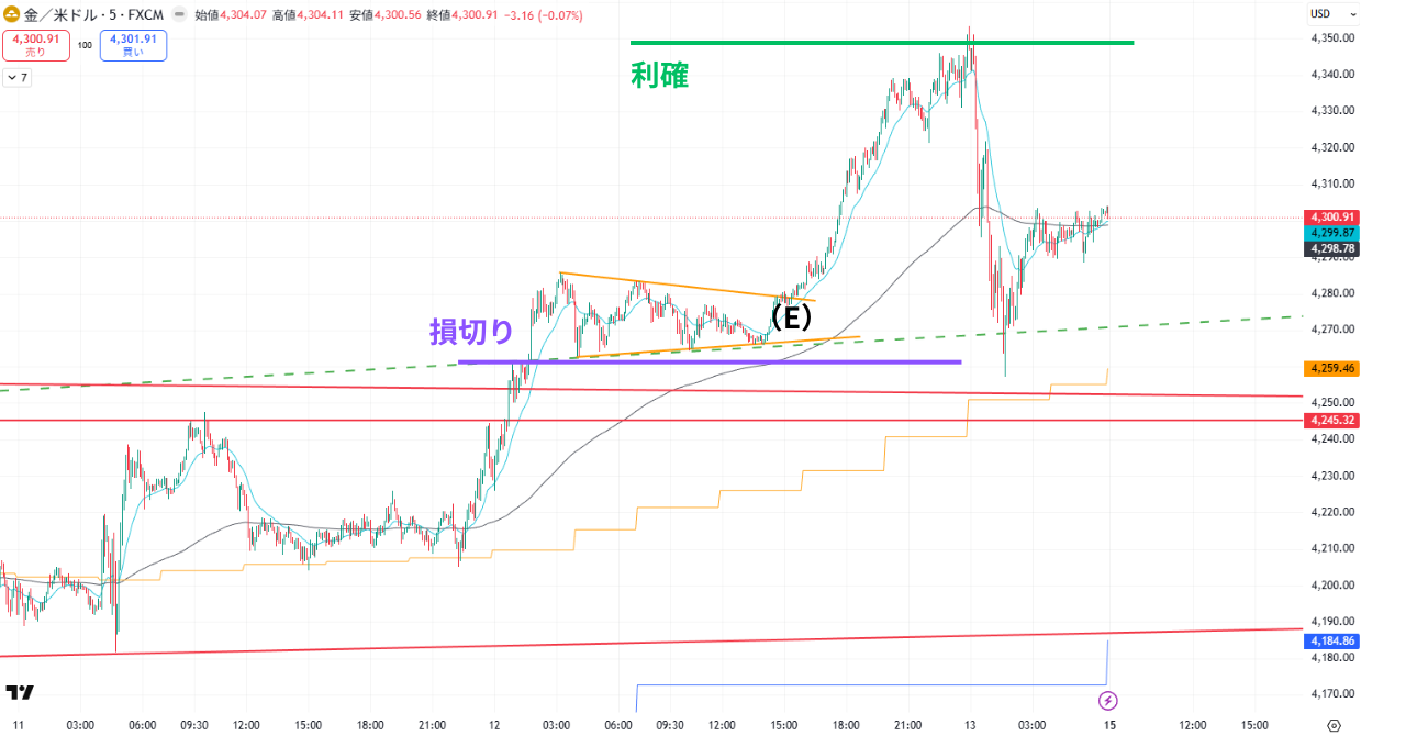 利確後に大きな下落が来たので、ギリギリ助かったという感じです。
