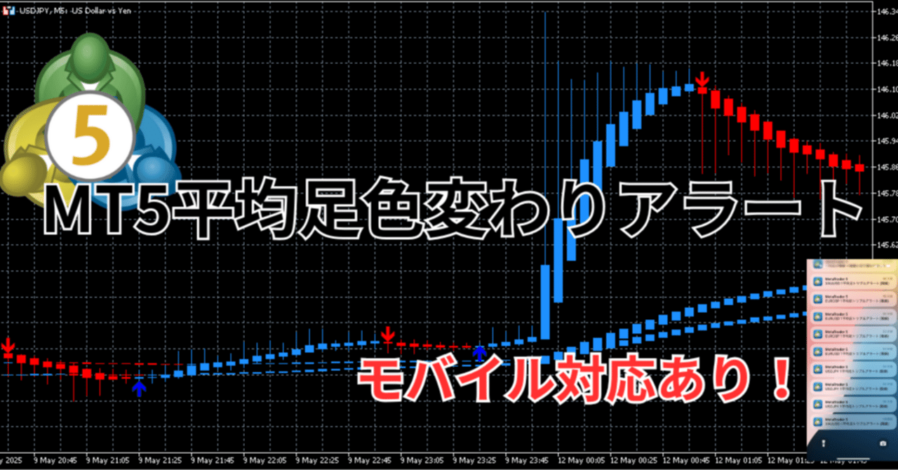 「MT5で平均足の色が変わったタイミングを自動で教えてくれるインジケーターがあれば…」そんな要望に応えるのが、今回ご紹介するMT5版平均足色変わりアラートです。
