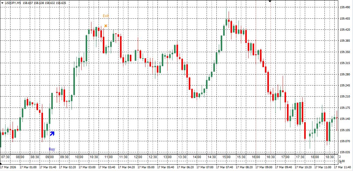 一方的に上昇・下降するトレンド相場は、押し目や戻りを作らないため、エントリーしづらいという課題があります。しかし、トレフォロスキャルを使用すると、そのような相場でも簡単にエントリーして細かくpips数を稼ぐことが可能です。