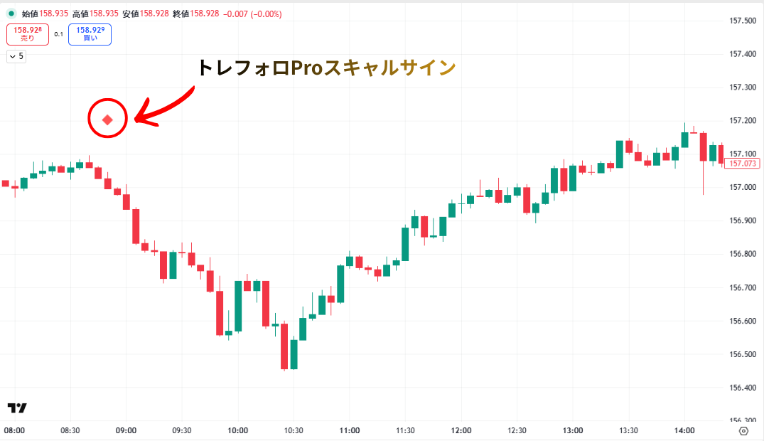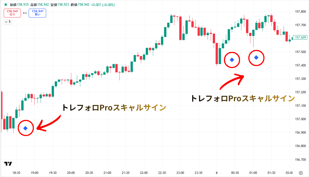 TradingView版のトレフォロProのスキャルサインは、ひし形で表示されます。