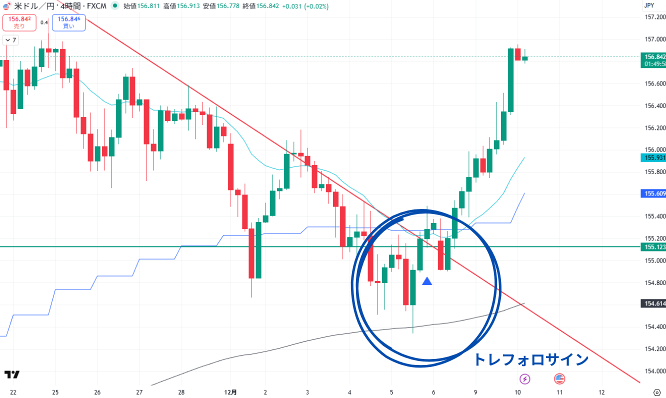 4時間足で陽線が確定したタイミングでエントリーをされたみたいですが、