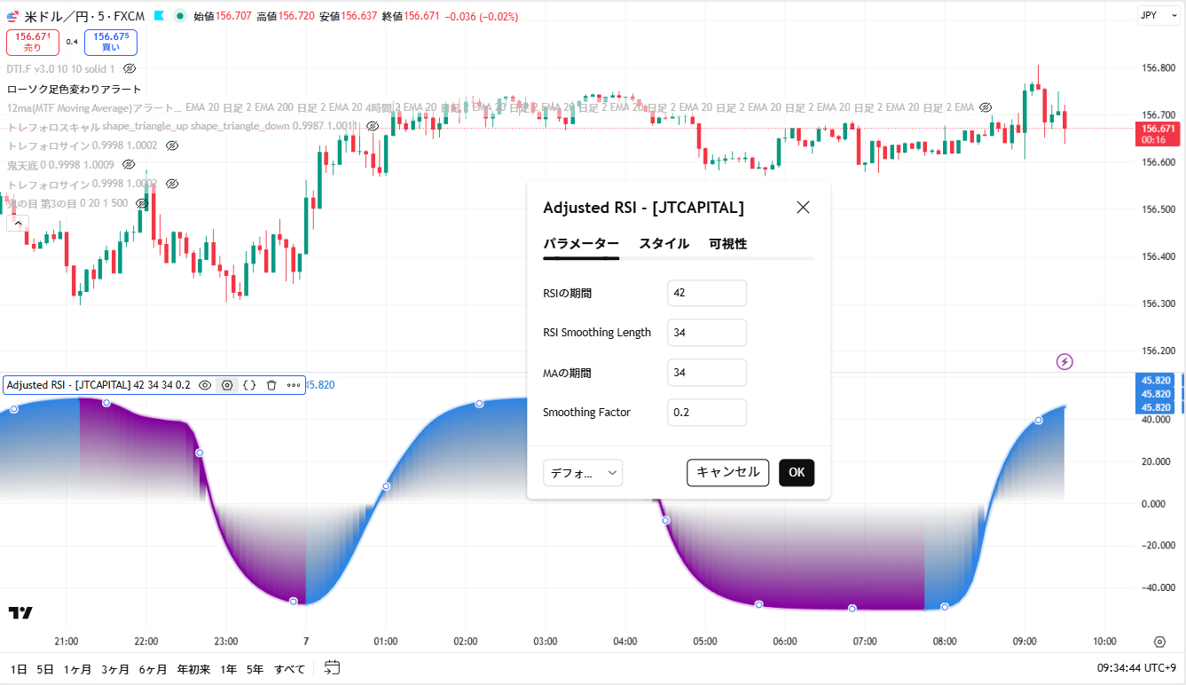 Adjusted RSIのパラメーター設定