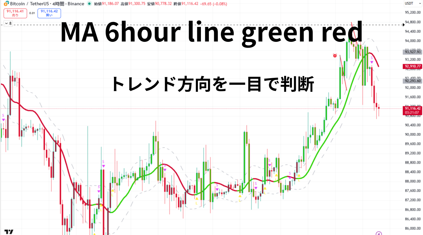 MA 6hour line green redは、6時間足の移動平均線を基準に、相場のトレンド方向をシンプルに判断するためのTradingView用インジケーターです。