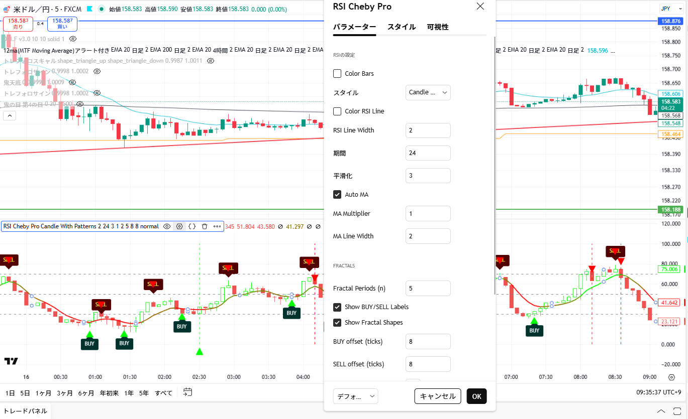 【TradingView】RSI Chebyshev Pro with Goldilocks Fractals / RSIのフラクタルでサインを表示