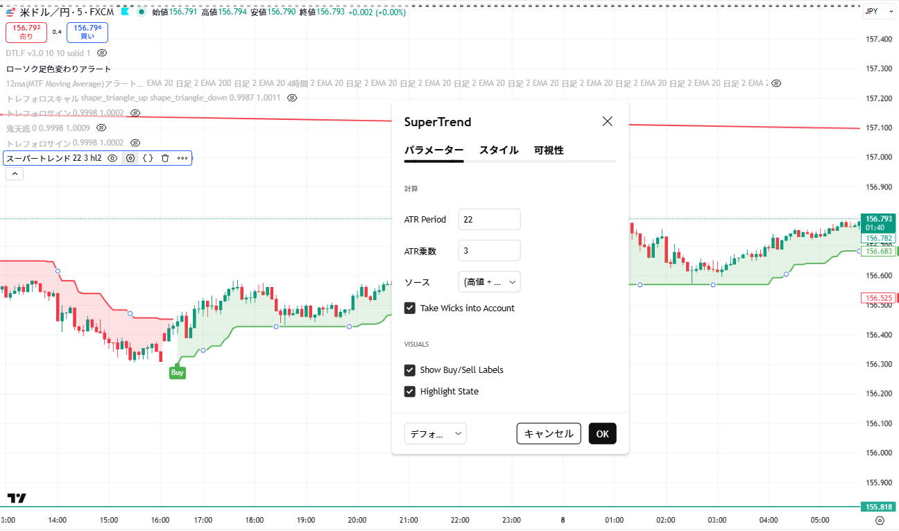 SuperTrendの主なパラメーターはATRの期間と倍率です。