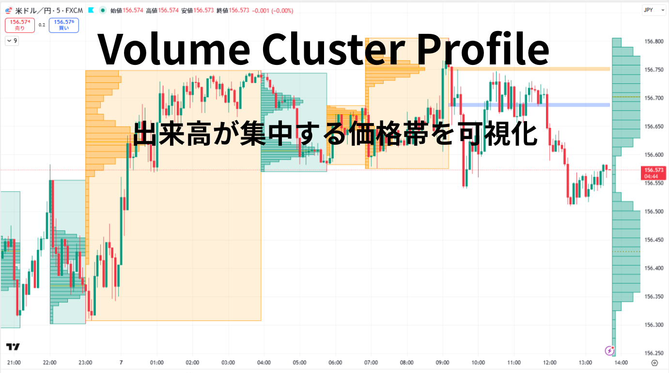 トレンド相場では、押し目や戻りがこのクラスター付近で発生しやすく、エントリーや利確の判断材料として活用できます。